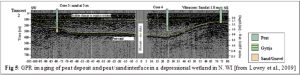 - Analysis: Time series of groundwater gradients and SW-GW fluxes to identify flow gradient reversals, measurement of vertical head gradients in peat pots, hydraulic conductivity of peat/sand layers, calculation of drainable porosity, GPR surveys to characterize hydrostratigraphy